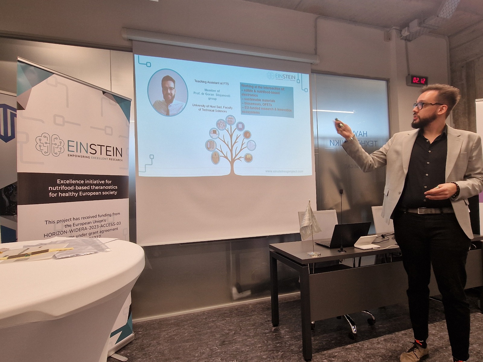 This session explored how Horizon Europe projects can move beyond research outputs to generate practical, real-world innovations. In a full hall, booked weeks in advance, Lazar Milić and Ivana Knežević from Faculty of Technical Sciences, University of Novi Sad, presented the EINSTEIN project – food waste and nutri food-based electronics.